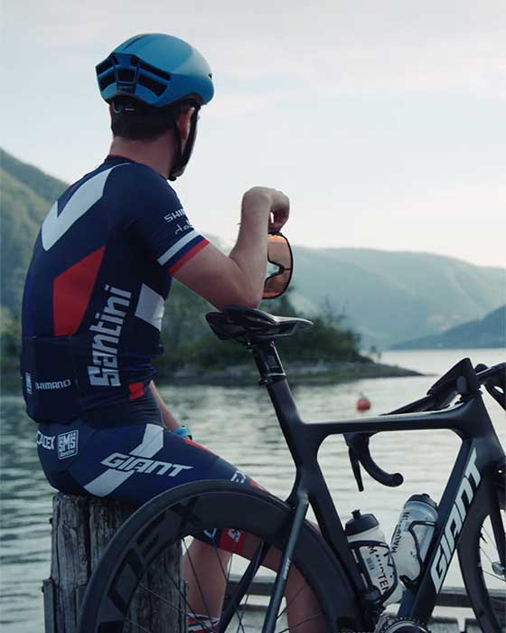 グスタフは2020年シーズンが始まる前に、GIANTとパートナー契約を結びました。トレーニングと競技のほとんどの時間、エアロロードバイク「PROPEL ADVANCED SL DISC」とトライアスロンバイク「TRINITY ADVANCED PRO」に乗っています。また、エアロ・アドバンテージを得るために、GIANTのPURSUITとRIVET TTヘルメットを使用しています。